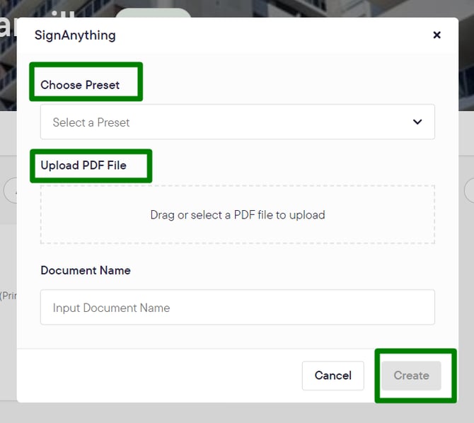 - Click Create, and choose SignAnything from the menu.