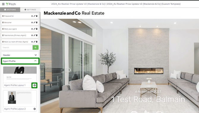 - When in your template, search 'Agent Profile Layout 1'.
